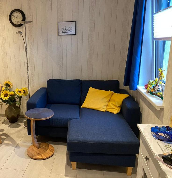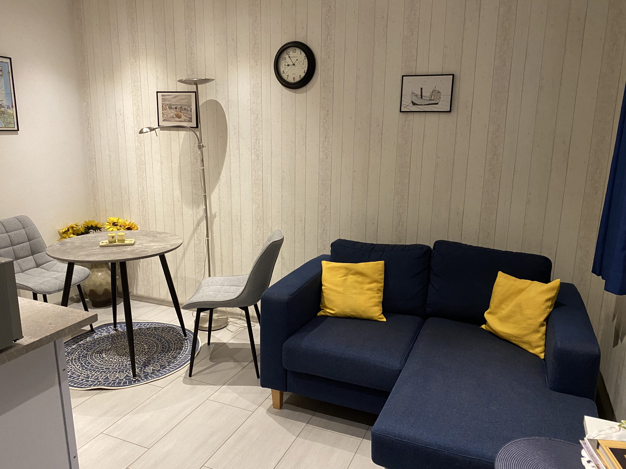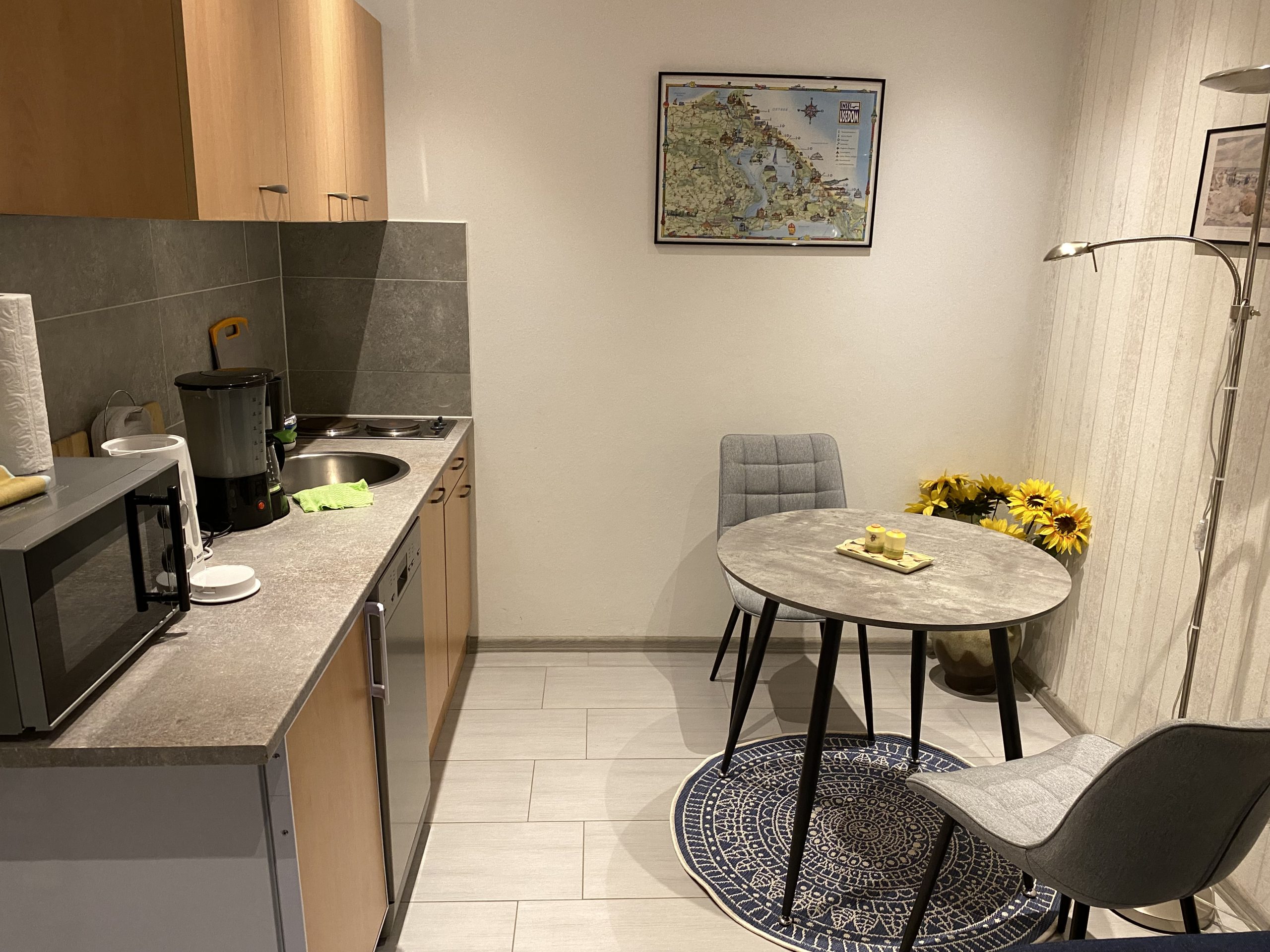 Der Wohnbereich besteht aus einem 2 1/2-Sitzer, einem Tisch und einem TV-Gerät (Satellit). Im Außenbereich stehen Ihnen ein Tisch mit 2 Stühlen, ein Wäschetrockner, ein Fahrradständer sowie kostenfreie PKW-Stellplätze am Haus zur Verfügung.